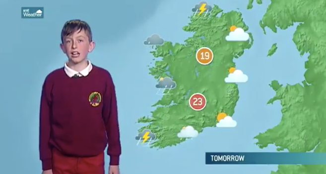 Presenting the weather for us today is Jack from Scartaglen National School in County Kerry. He won our weather competition. He told us his favourite season is Summer. pic.twitter.com/rCP7ZLzriH