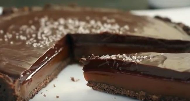 The description on YouTube reads: “A buttery almond crust, gooey salted caramel and bittersweet chocolate ganache, all garnished with salted crystals. Chocolaty, rich and buttery, a perfect treat for any occasion.”