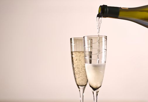 2. Reduce speed to medium and slowly add champagne. Briefly return speed to high to return peaks to whipped cream.