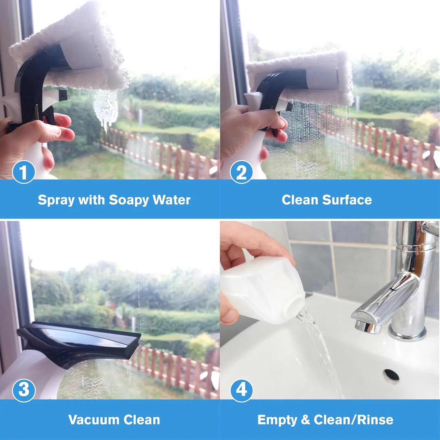 It features a high-performance motor that generates strong suction to extract water, dirt, and cleaning solutions from windows.