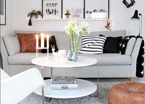 1. Use two small tables instead of one large coffee table – this way the tables can be moved around more easily to accommodate guests.