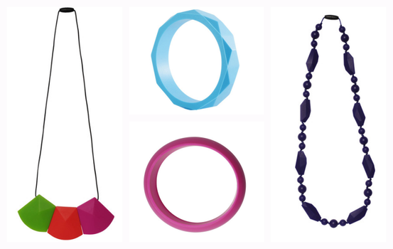 The chewable jewellery is made from foodgrade silicone (like baking spatulas and reusable cupcake cases), and is perfect for soothing during the teething process.