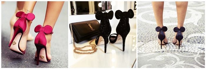 Available in pink satin, black satin or (our favourite) black sparkle, these luxe heels feature an elegant ankle strap and the piece de resistance: a pair of sweet Minnie Mouse ears at the back.