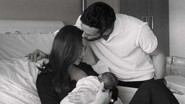 Watson simply shared the news by posting a photo of her and her husband cuddling their newborn baby in hospital.