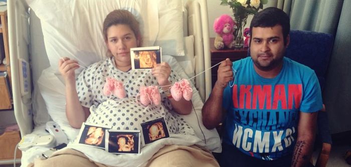 “When we found out we were expecting 3 babies our hearts were filled with so much joy, we felt so blessed! Three months into the pregnancy the doctors had some bad news for us, two of the babies are conjoined from their lower stomach but they were not sure if they were sharing any organs.