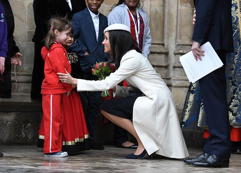 The former actress was at Westminster Abbey with her fiancé and the rest of the royal family today for her first Commonwealth Day service.