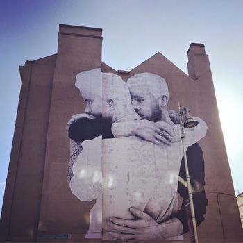 Users of Youth Defence.ie this morning were greeted with an image of Caslin’s mural recently completed on the side of a building on Dublin’s Georges St. that shows two men in an embrace.