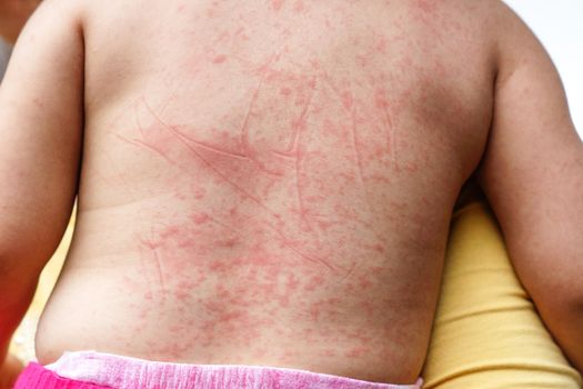 - A widespread, fine pink-red rash that feels like sandpaper to touch. It may start in one place, but soon spreads to many parts of the body, such as the ears, neck and chest. It may itch.