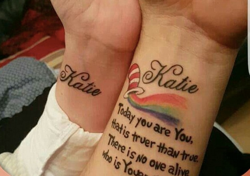 The poem under the little girl’s name and a picture of the striped hat from ‘Cat in the Hat’, which reads: ‘Today you are You/ that is truer than true. There is no one alive who is Youer that You.’ Which, of course, is an extract from the book Happy Birthday to You!’, the 1959 children’s book by Dr. Seuss.