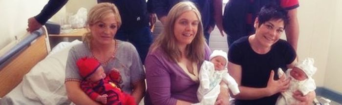 Three sisters gave birth within hours of each other at Mayo General Hospital yesterday… and a fourth sister is due to make it a foursome in the nursery today.