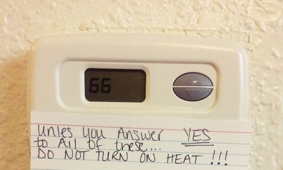 “Unless you answer ‘yes’ to all of these, do not turn on the heat,” the note reads.