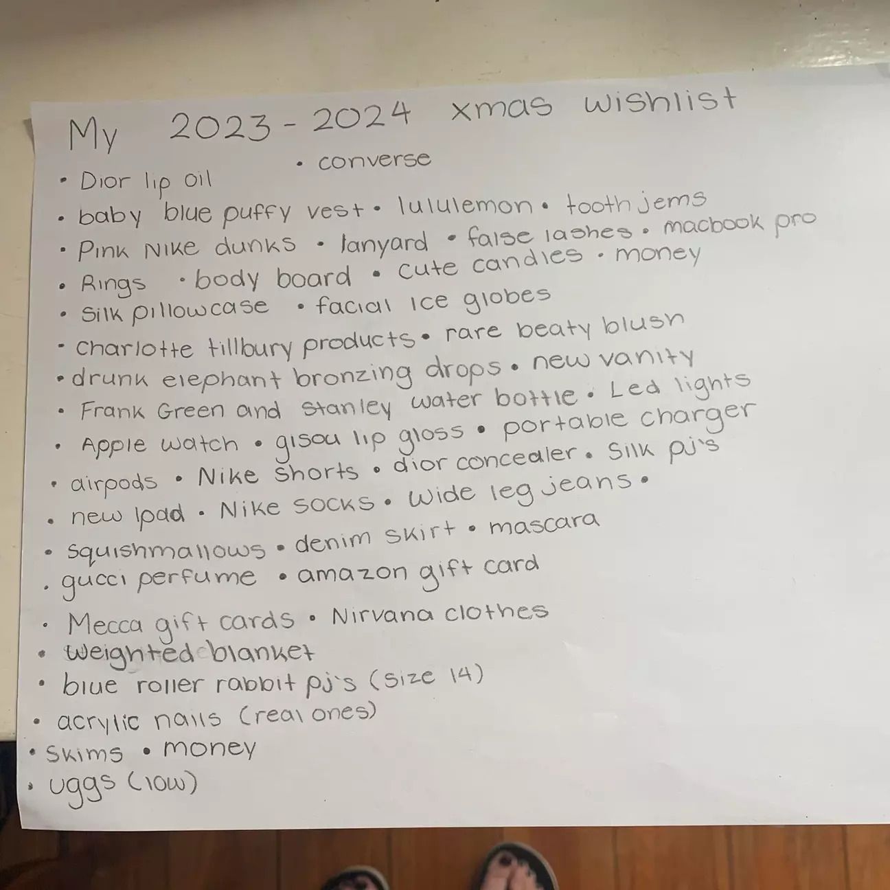 Money was put on the list too, not once but twice, as were AirPods, a new iPad, and Skims.