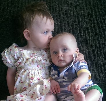 Caitlin, all 20 months of her, was up the front of the double-buggy while her younger brother, Patrick, seven months, chilled out in the back.