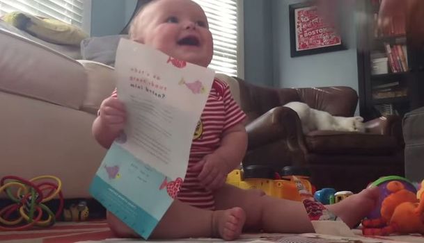 The hilarious and cute clip was uploaded to YouTube by mum-of-two Stephanie O’Donnell, who says that she was looking through a catalogue when a page ripped and her daughter, Poppy, started laughing. “I set up the camera to see if she would do it again and oh man, did she ever!”