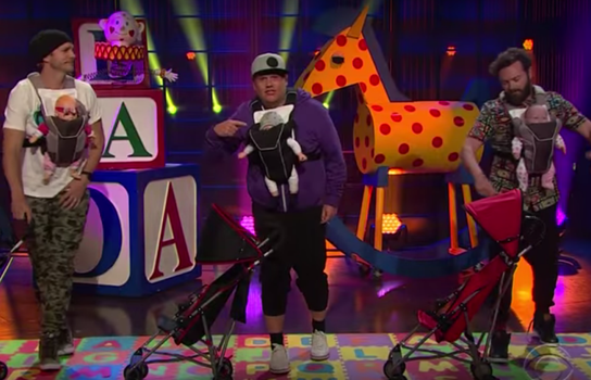 James Corden, Ashton Kutcher and Danny Masterson got together on The Late Late show with James Corden to bust out some dubious rhymes, dodgy dad dancing and questionable parenting methods (there’s baby throwing) in a hilarious parody video for the new boy band on the block, Puff Daddies.