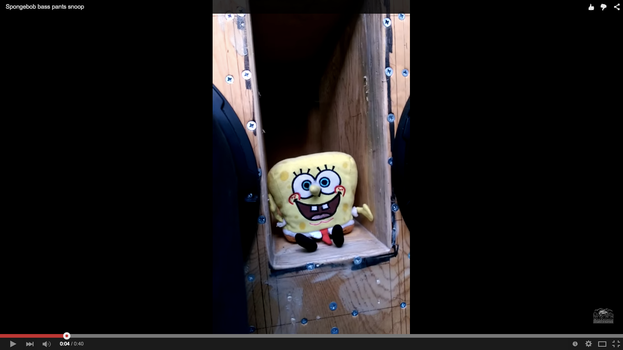 This manic SpongeBob is totally amazing dancing to a Snoop David Guetta mashup. So how does it work? Here comes the science bit (or at least our rudimentary grasp of it): In woofers air is brought in (that’s why the SpongeBob goes in) to push the woofers out and then air is pushed out (that’s why the SpongeBob goes out). So the constant sucking and pushing out of air keeps SpongeBob in place and dancing his little shiny black shoes off.