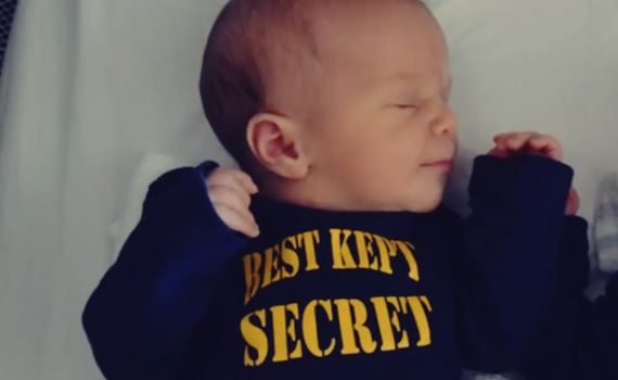 Having kept their new baby’s gender (and another important detail) a secret throughout the entire pregnancy and birth, Sharon and Corey Rademacher eagerly await their visitors to the maternity ward.
