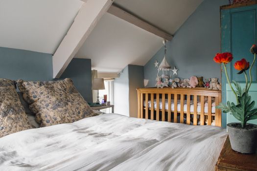 The Lullaby Trust recommends that babies sleep in their own cot or Moses basket for the first six months at least.